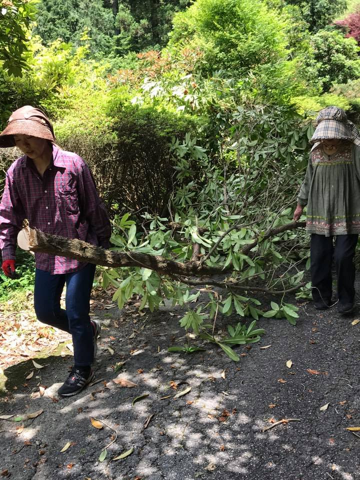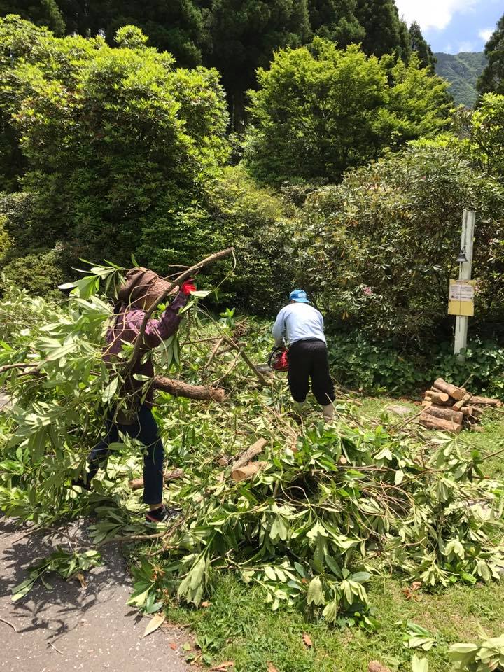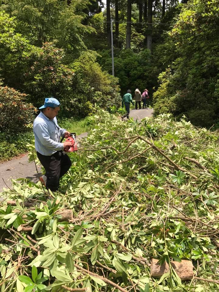 園内の整備作業 しゃくなげの森は、しゃくなげ花祭りが終わり園内の整備作業に入っています。 今日は道路や遊歩道などにある、しゃくなげの枝打ちや、伐採作業。 大木の枝打ちはチェンソー使って行います。 妹宅にはダルマストーブがあるので、良質な薪が手に入ったと喜んでいます。 しゃくなげの薪ってかなりレアです。