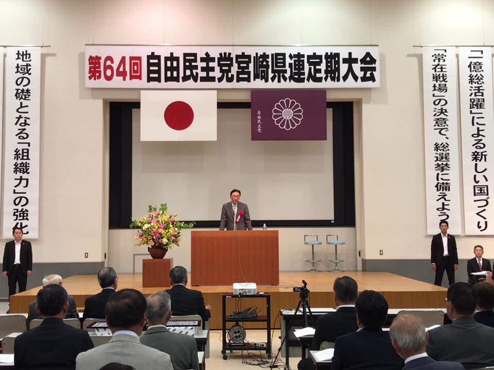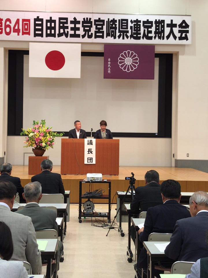 自民党宮崎県連大会出席 自民党宮崎総務会に出席。 50人以上のロの字会議です 続いて、自民党宮崎県連大会出席 党本部から古屋選対委員長、地元国会議員全員出席の元、会場は400人を超える出席者で盛大に開催。