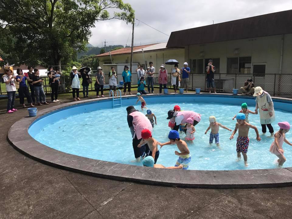 保育所でヤマメつかみどり 地元保育所のイベント、ヤマメつかみどり。 子供たちのキラキラした笑顔が弾けます。地元消防団協力でポンプ車で水を入れるという地域の機動力もあります。 並んでいる時から子どもたち興奮状態です。 いざ始まると魚が怖くて逃げる子、水をかける子、魚を追い回す子などそれぞれ、歓声が響いていました。 毎年行っている保育所の恒例行事です。
