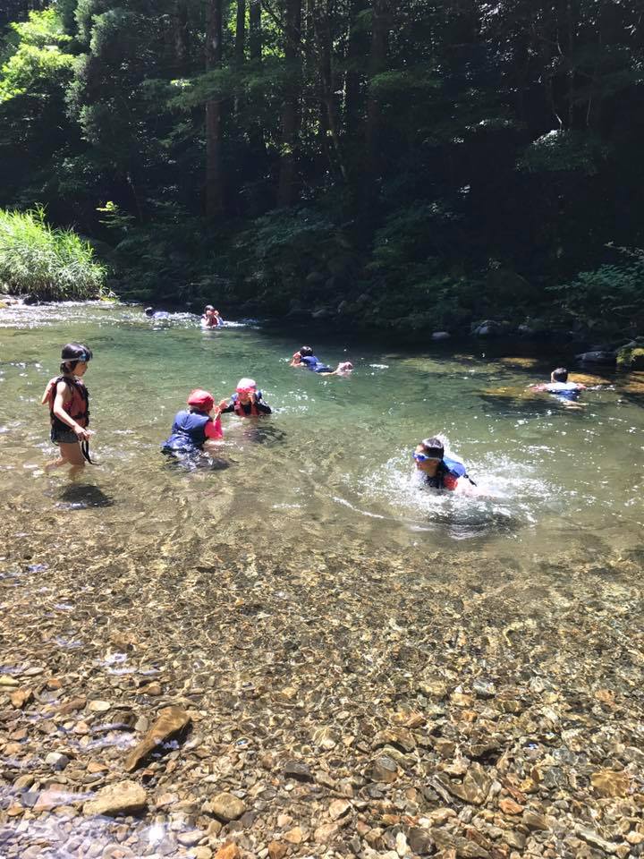 川遊び安全教室 しゃくなげの森の「夏のヤマメ祭り」盛り上がっています。 今日は下界はかなり暑いようですが、ここは涼しい風が吹き抜けています。遊びに来ている子供達は冷たい川遊びで震えていました。笑 ヤマメつかみ取りと川遊び安全教室の取材がありました。UMKで本日ヤマメつかみ取り、水曜日に川遊び安全教室の模様が放送されます。