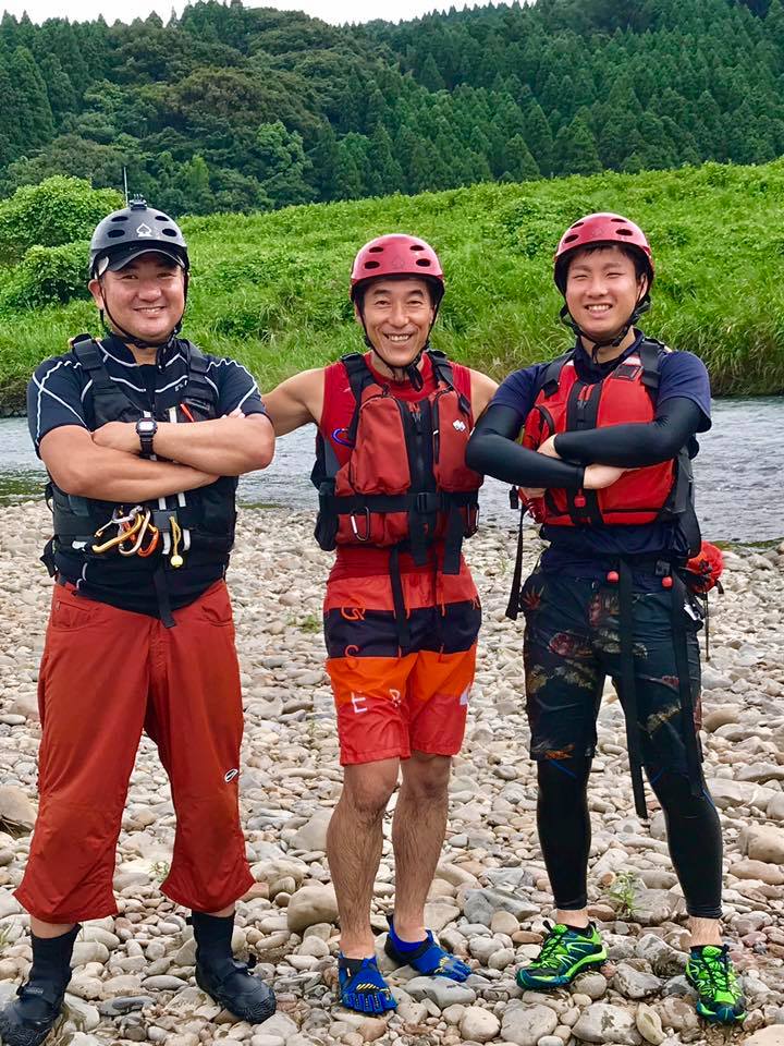 水辺安全研修会実技講習 水辺安全研修会実技講習。 水難救助インストラクター3人です。 水難救助インストラクターとしてロープレスキュー訓練や、渡河訓練を行いました。 激しい流れでの訓練でしたので、かなり貴重な体験になったと思います。川に流された時はかなり恐怖を感じたとのことでした。 バックアップ体制万全での訓練で、みなさんいい経験になったようです。 鬼指導員の本領発揮させていただきました。