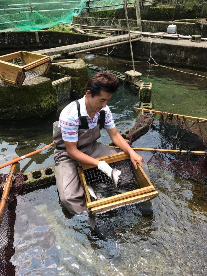 ヤマメ釣り用の選別 「夏のヤマメ祭り」は涼しい渓流で「ヤマメつかみどり」や「ヤマメ釣り」が楽しめます。 午前中は、国土交通省でのイベントで、川の安全について子どもたちにレクチャーしていましたが、午後からはヤマメ釣り用の選別作業。 脂がのって丸々太ったヤマメなので、塩焼きにしてにかぶりつくとみんな笑顔がこぼれます