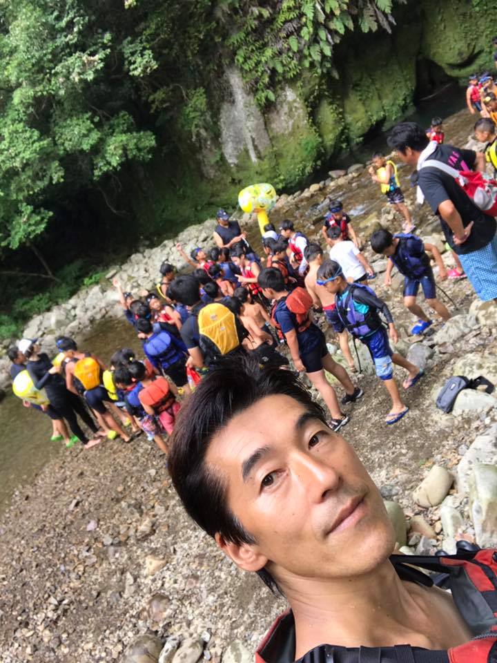 冷たい渓流での川遊び安全教室、宮崎県河川課事業。
