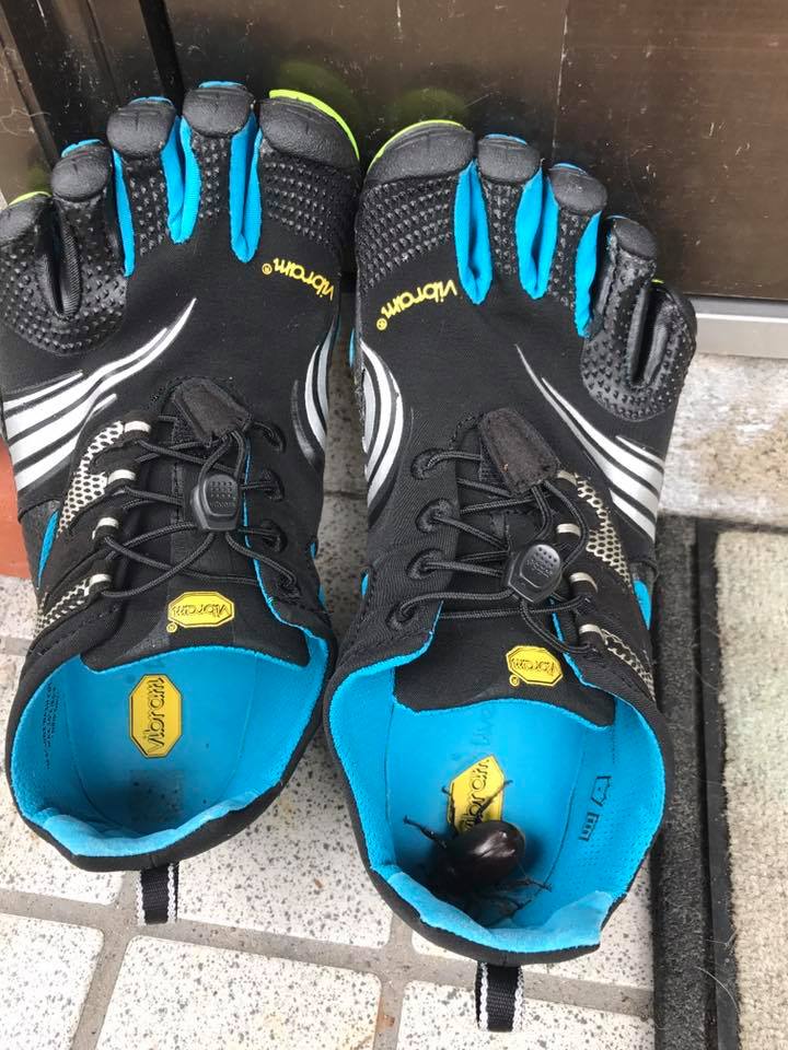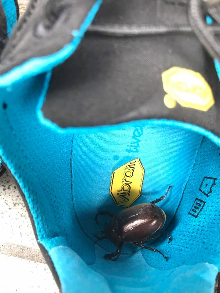 カブトムシ ヤラセではありません。 玄関の灯りの下に干していたVibramシューズ。 朝、なんとその中にカブトムシがいるというミラクル。 かぐわしい香りでもしたのかと首をかしげながら森に帰しました。 カブトムシの恩返しが待ち遠しい(笑笑)