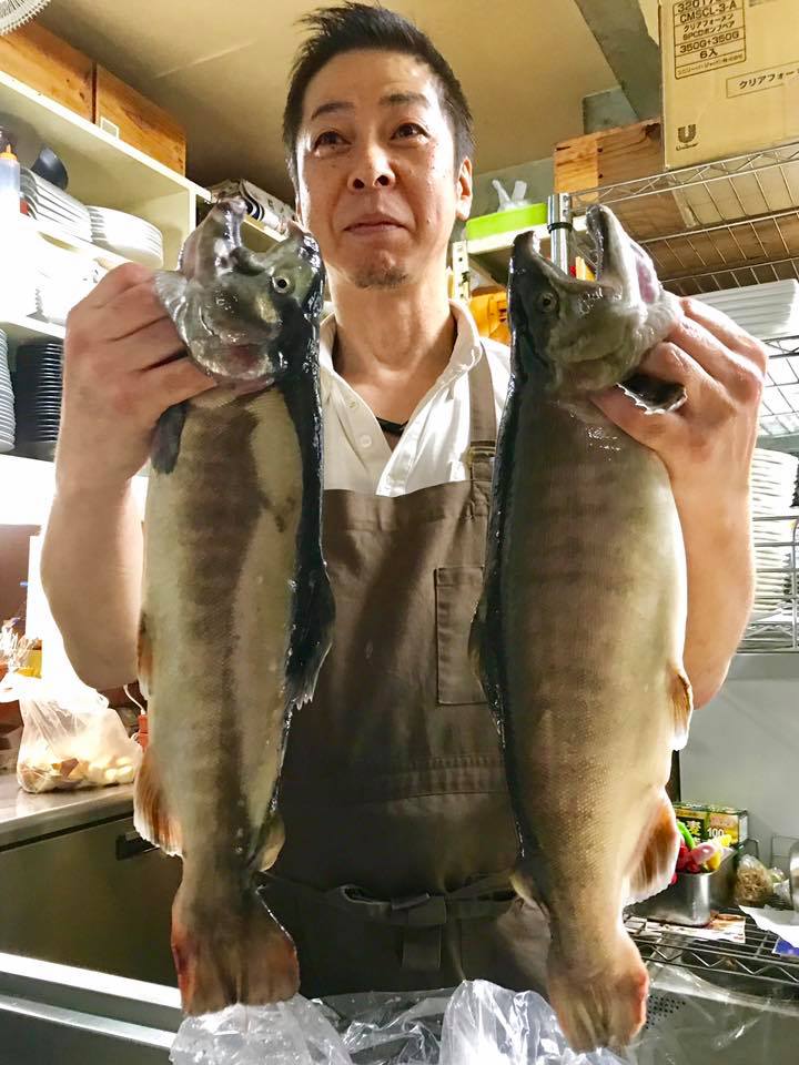 幻の尺ヤマメがいよいよフレンチキッチンに登場。![]()