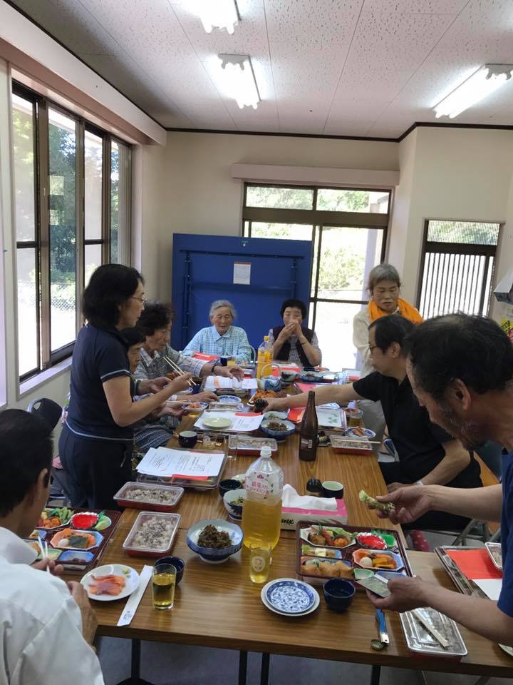 人数は少ないですが、みんなでご馳走を持ち寄るのでテーブルは一番裕福な敬老会です。