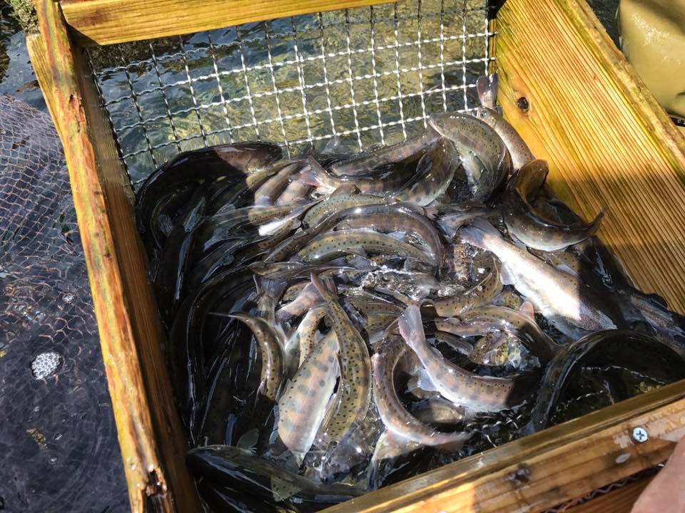 ヤマメ選別作業。