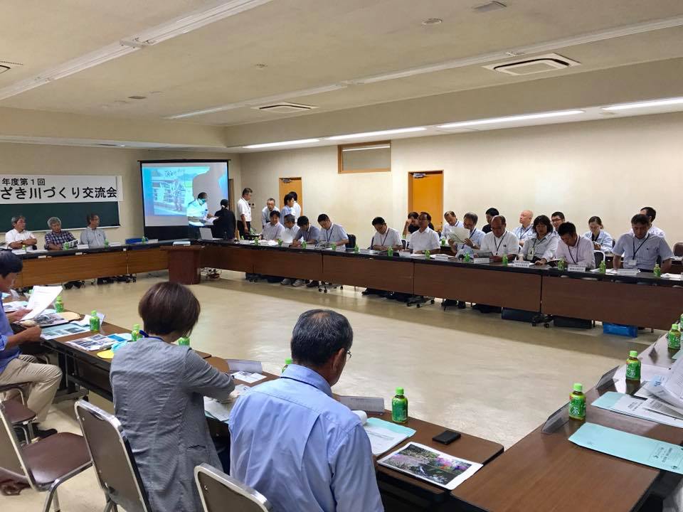 みやざき川づくり交流会 みやざき川づくり交流会。 国土交通省から鈴木所長をはじめ25名、宮崎県河川課や土木事務所から9名、市民団体代表者など21名。国富町役場職員などで合計60名の会議体になっています。 現地調査は本庄川と深年川。 雨模様でしたが、生き物も多くて、楽しめそうな川にみんな見入ってました。