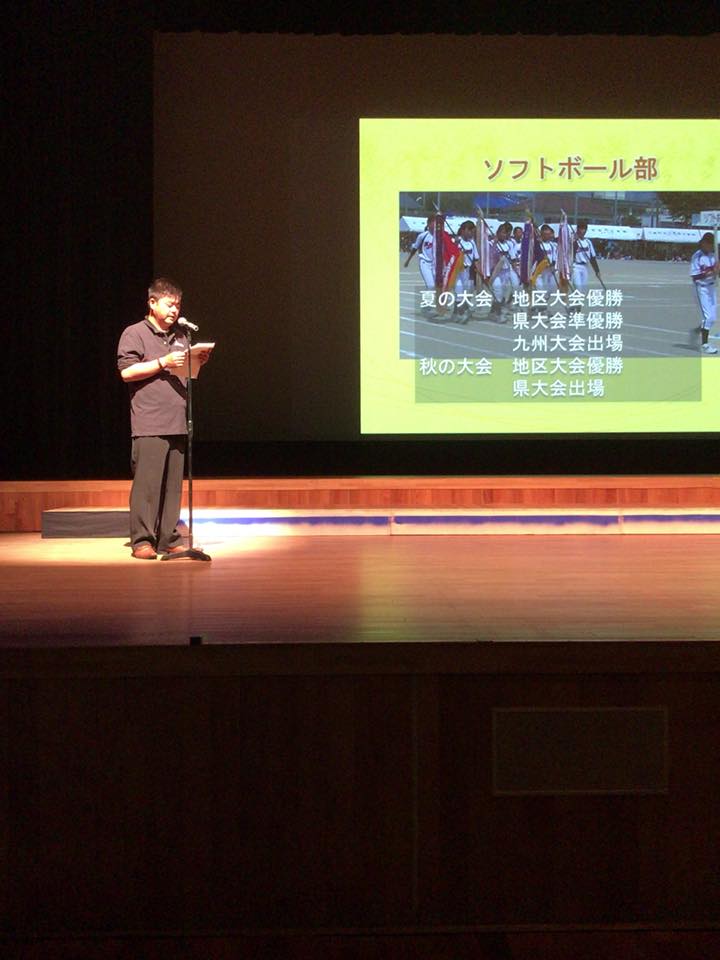 三股中学校のPTA発表は木佐貫 雄一会長。部活動の大会紹介で8割終わる荒技(笑