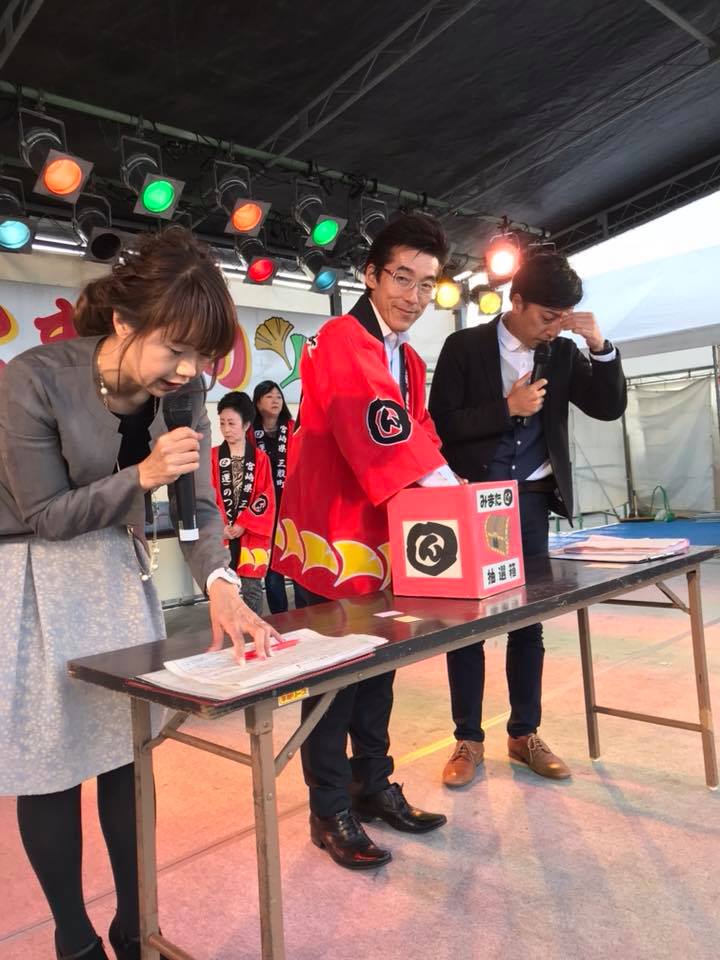 桑畑 喜芳さんは三股町の骨髄バンク制度を活用した第1号。ステージに上がってPRしてもらいました。