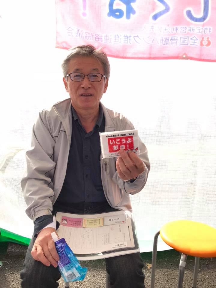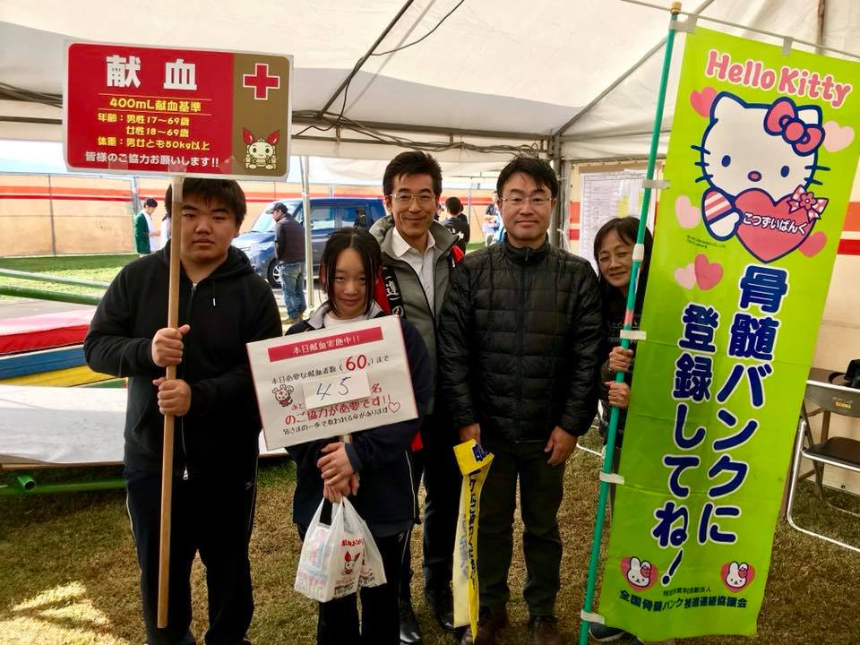 「三股町ふるさと祭り」の会場で献血と骨髄バンク登録しています。