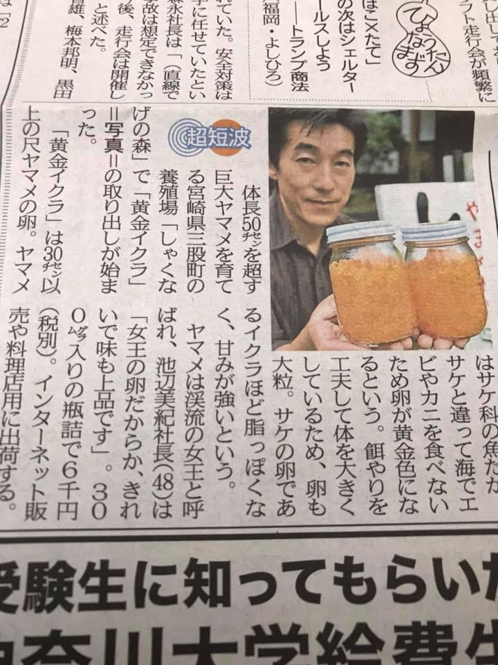 西日本新聞の社会面、九州版で黄金イクラが紹介されました〜〜