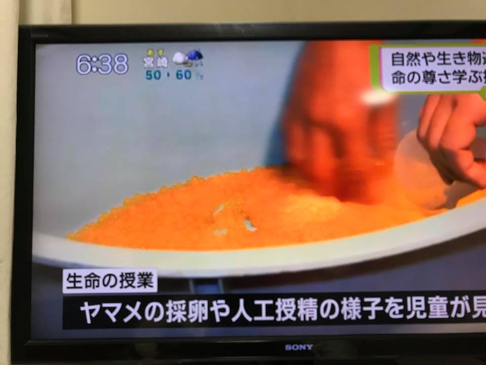 いのちの授業 今日の「いのちの授業」ヤマメ採卵見学会の模様がMRTテレビで報道されました。 受精という生命のスイッチが入った瞬間から、卵では細胞分裂、卵分割が始まり、2週間で発眼。分化が進んでいき約1ヶ月で孵化、2年経つと尺ヤマメになります。 そのいのちの時間の始まった瞬間の見学でした。それぞれに生命の神秘を感じていました。 今年で21年目のこの社会貢献活動。 平成26年にしゃくなげの森は環境大臣表彰を授与されています。