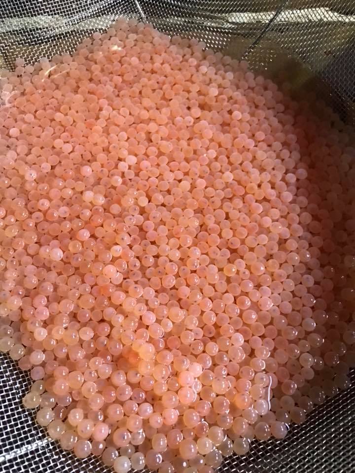 発眼卵発送 ただ今、夜中1時半、ようやくヤマメの成長の時間に、検卵が追いつき発送の段取りができました。 岡山県と広島県の養殖場が今か今かと待っています。 採卵、検卵、黄金イクラ製造、甘露煮製造、発送作業など、時間に追われる作業が続きますが、明日から東京出張。帰ってきたらまた作業山積みの予感。 頑張れオレ。笑