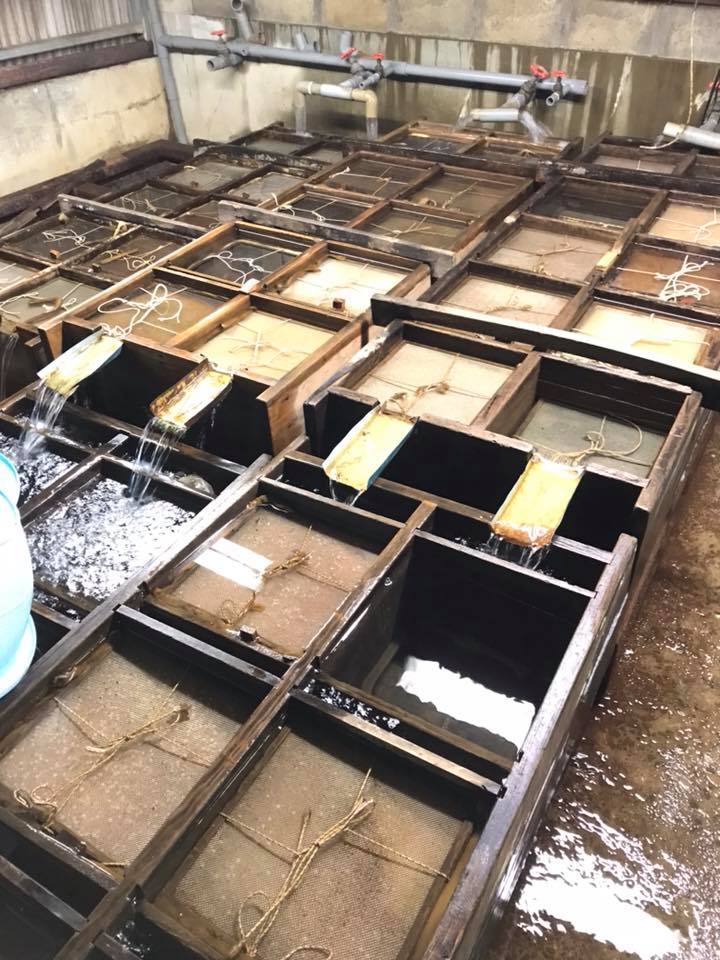 ヤマメの採卵、人工授精作業も、過渡期を迎え孵化層が受精卵でいっぱいになってきました。その数およそ200万粒。