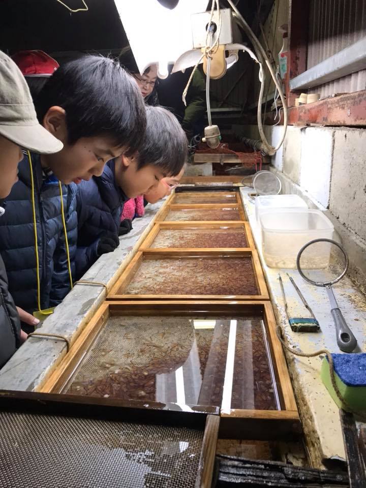 子どもたち、ヤマメの採卵人工授精を見て自然の神秘を感じていました。孵化したばかりの稚魚を見て卵からなぜこうなるの?と不思議そうにしている子も。