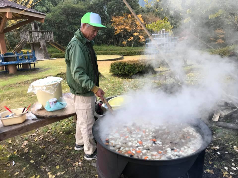 長田峡物産展 長田峡物産展、朝から大変盛り上がっています。 9時開始なのに8時半には人だかり、開始早々売り切れてしまう商品もありました。 大きな白菜150円、高菜の大束100円ってありえない価格にみんな大喜び! 話題のイノシシ汁もガネも安定の人気です。 朝から公民館長として走り回っています。