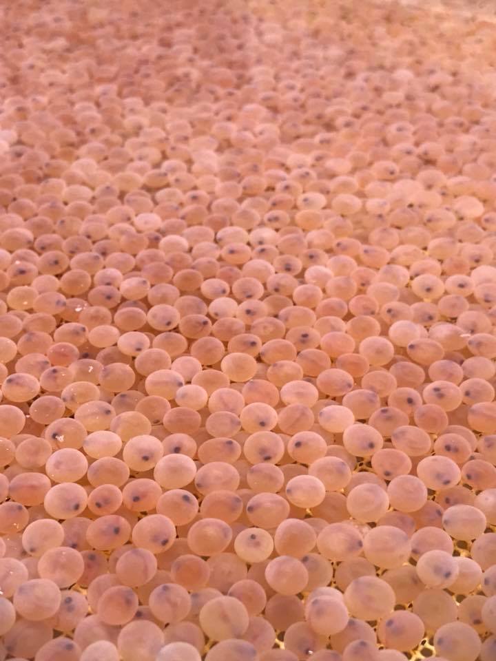 ヤマメ発眼卵検卵作業。
