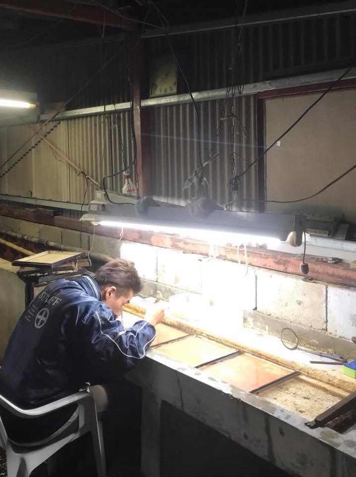 ヤマメ発眼卵検卵作業