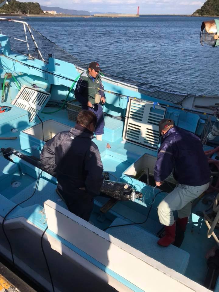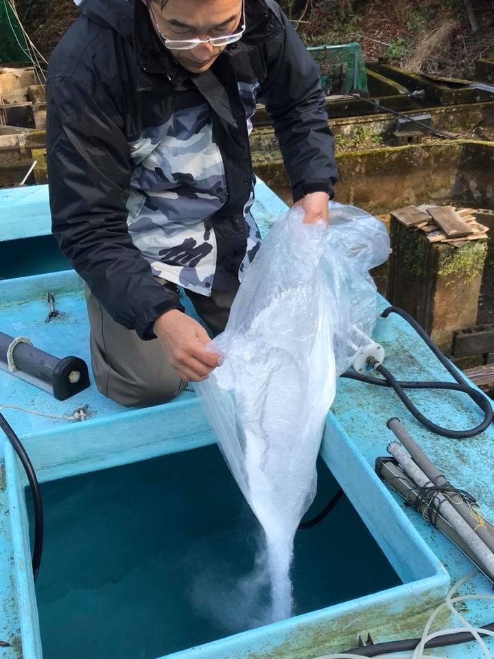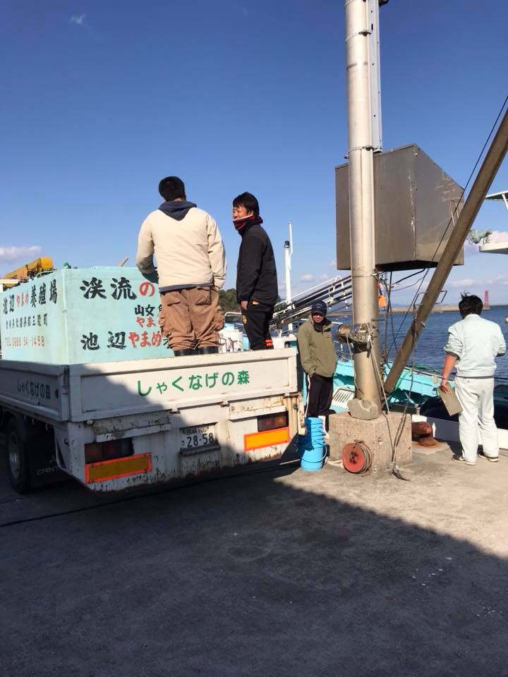 宮崎サクラマス事業 宮崎大学との連携、宮崎サクラマス事業。 しゃくなげの森のヤマメが延岡市土々呂港の海面養殖業者に渡されました。 しゃくなげの森からは海水濃度50%で活魚輸送し最初の馴致。 今日から船底で2日かけて徐々に海水馴致を行い、海面の生簀に入れて4月までに大きく育て、上手くいけば1kgサイズになる予定。 海面養殖の甲斐さんは29才の好青年。通常は伊勢海老、岩牡蠣、緋扇貝養殖販売。儲かる海面養殖に希望を抱いています。