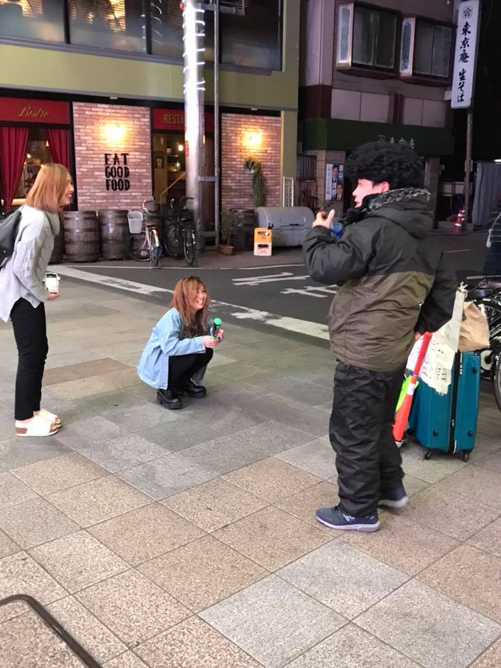 チャーリーがミスド前で、ちょうど、キラキラ女子二人も笑顔で一発いってました![]()