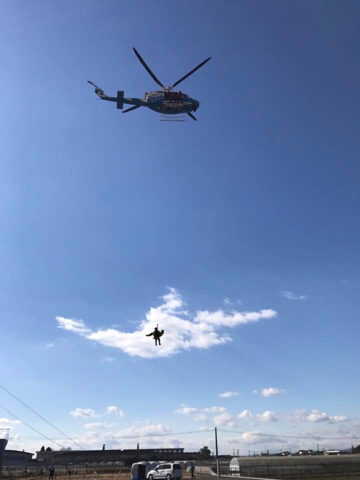 救助訓練は、防災ヘリあおぞらも出動し迫力あるものになりました。