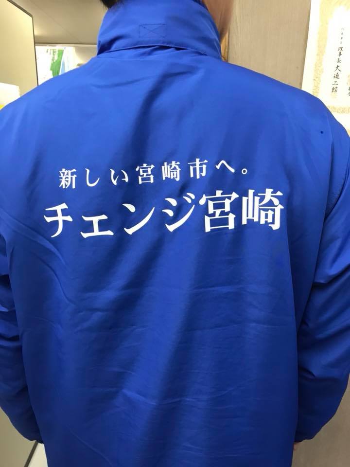 清山候補の選挙応援 今日は、一日中清山候補の選挙応援。 宮崎市内をチェンジ宮崎広報車に乗って活動いたします。 候補者は36才の若さですが、見ての通り事務所にも若いパワーがみなぎっており、朝から笑顔が溢れています。 こんな事務所ならだれがきても楽しいだろうなぁと感心しました。ぜひ瀬頭交差点近くの事務所にお越し下さい。