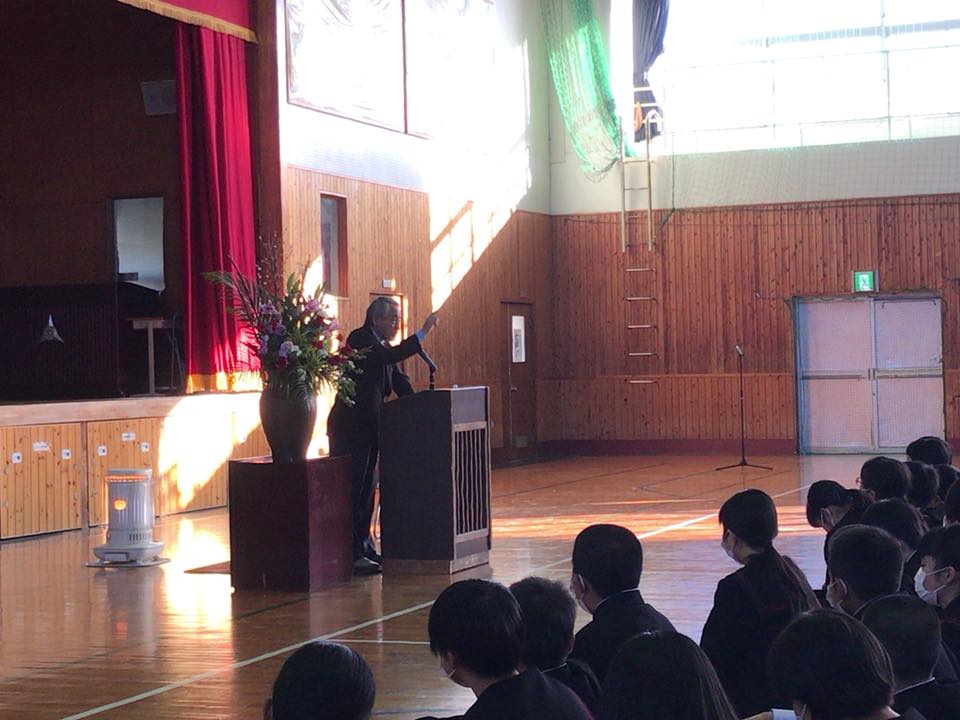 三股中学校1年生を集めての講演会