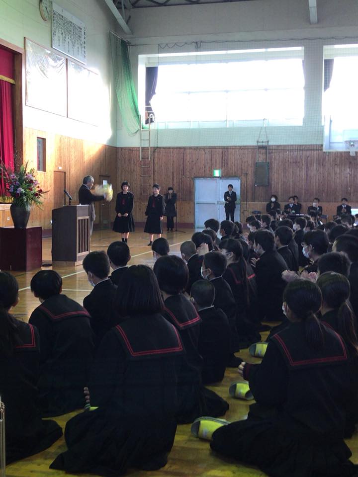三股中学校生徒の礼儀正しい振る舞いに驚きました。それぞれに何かを感じ取ってくれたらと思いました。