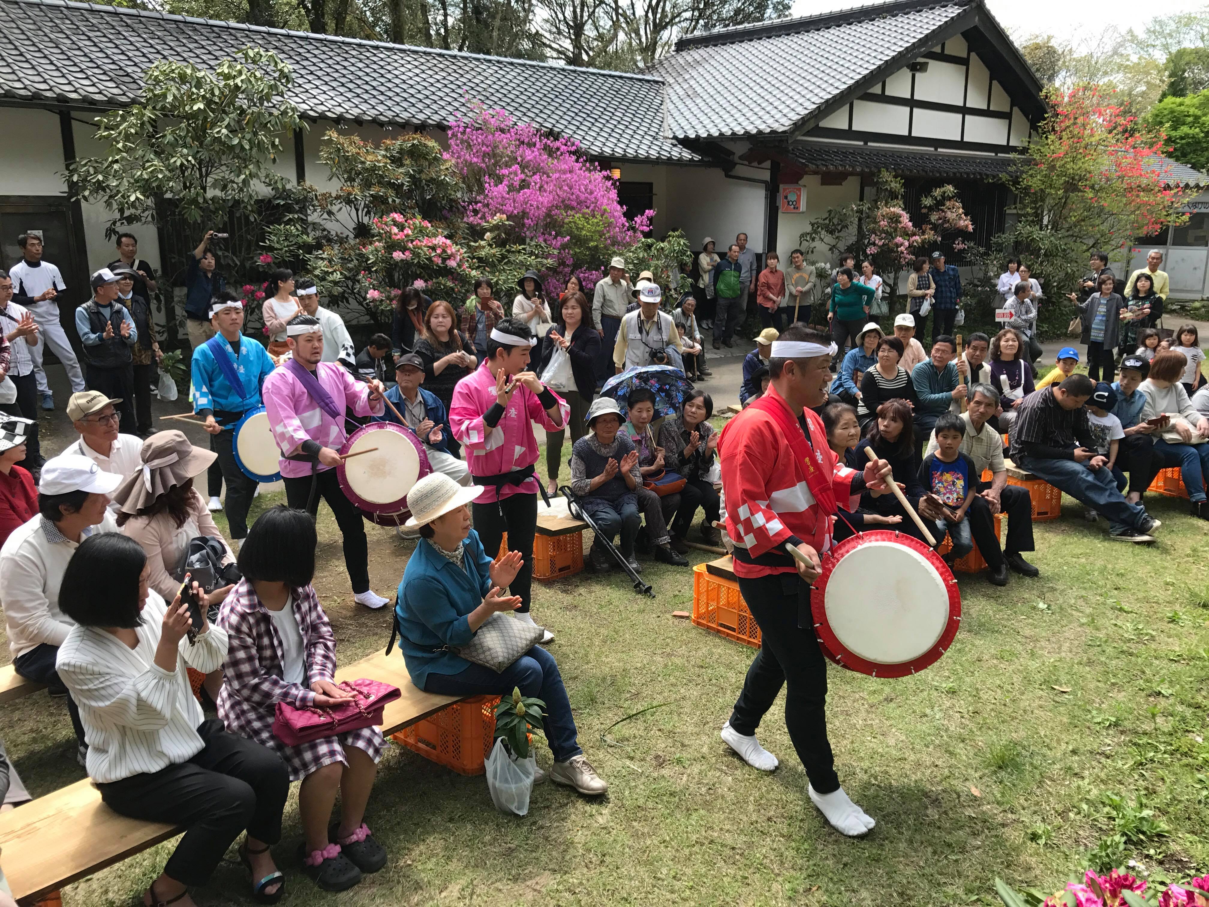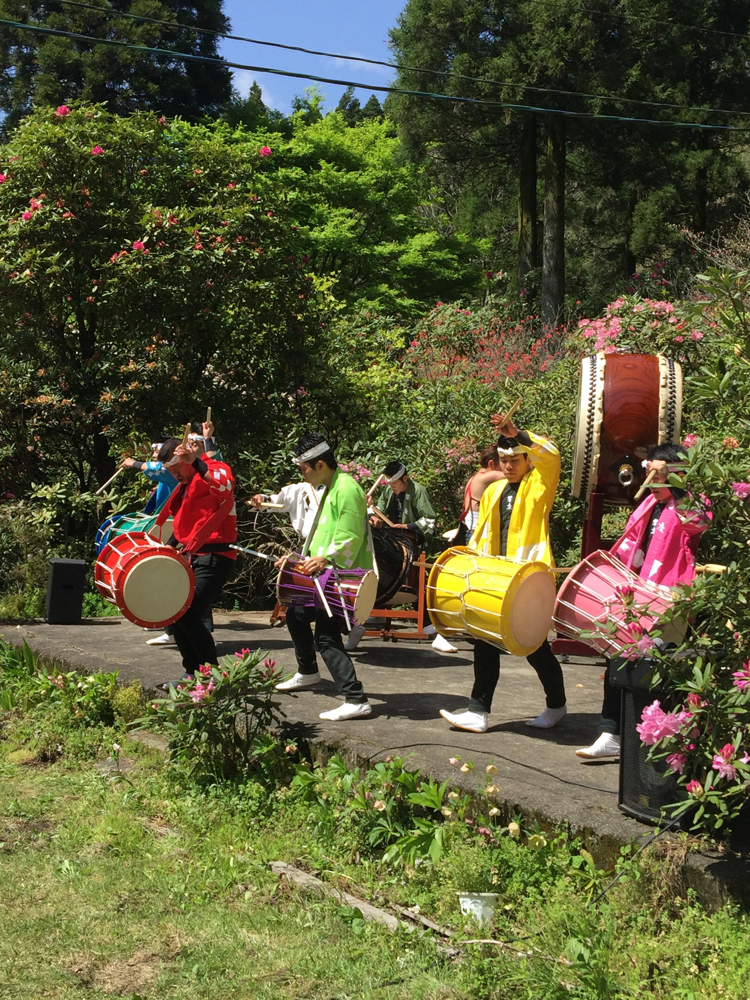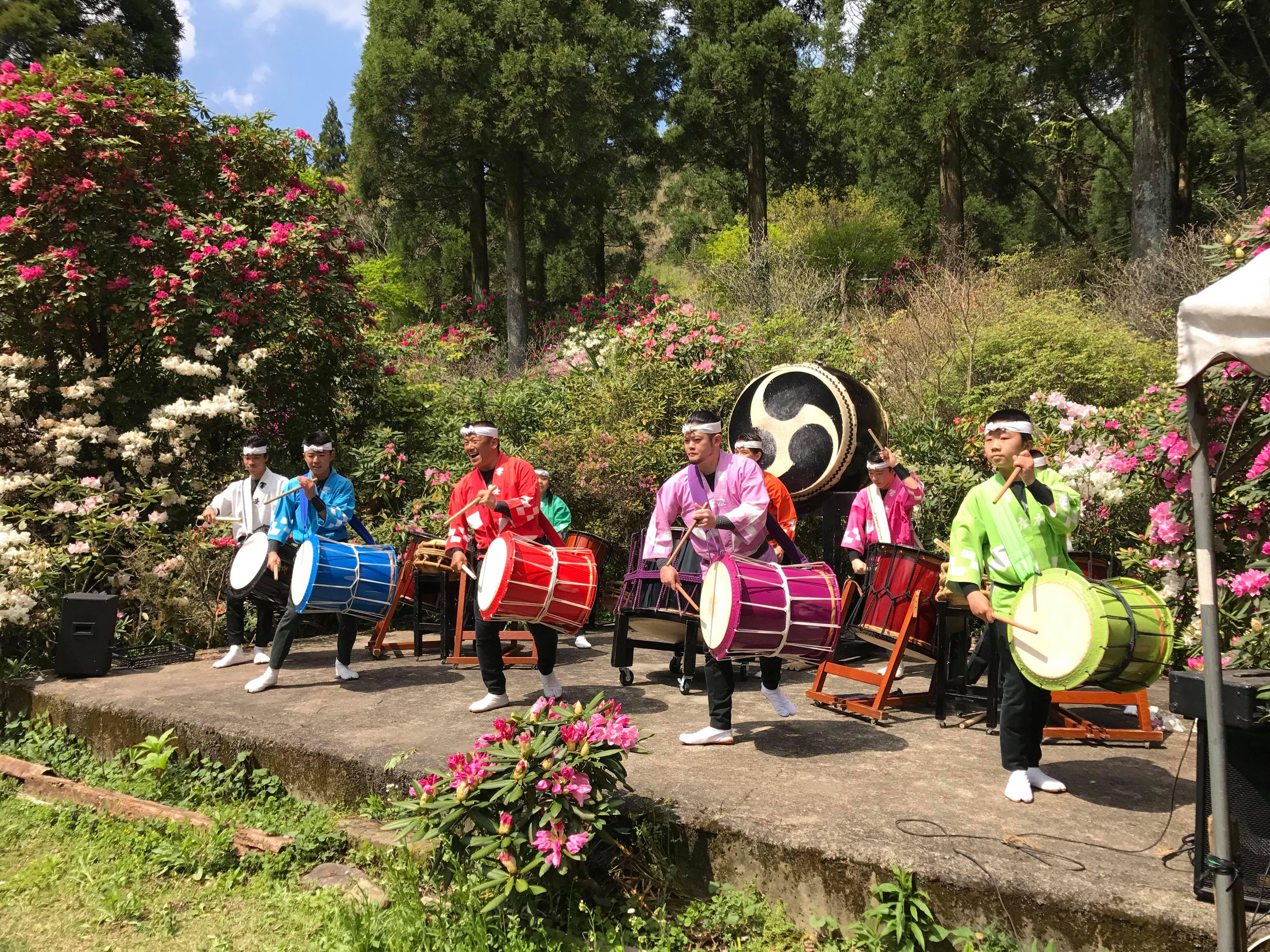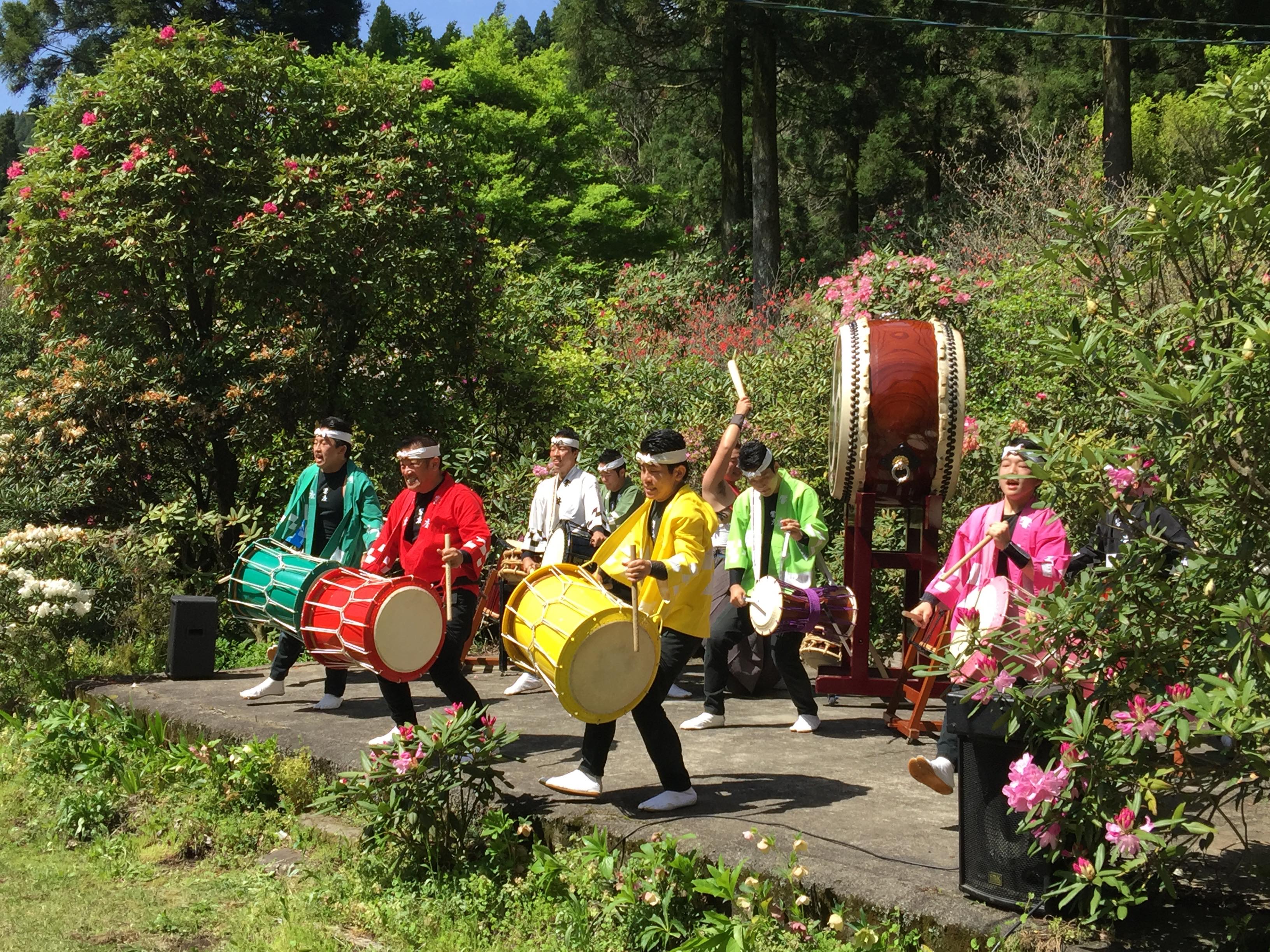 4/22に橘太鼓響座の演奏開催決定 しゃくなげの森イベント情報。4月22日 豪華な花園に響座の太鼓が響きます。 (写真は昨年のものです) 20年間毎年来ていただいていますが、毎年お客様にも評判がよく、心震える感動の演奏に多くの拍手を頂いています。
