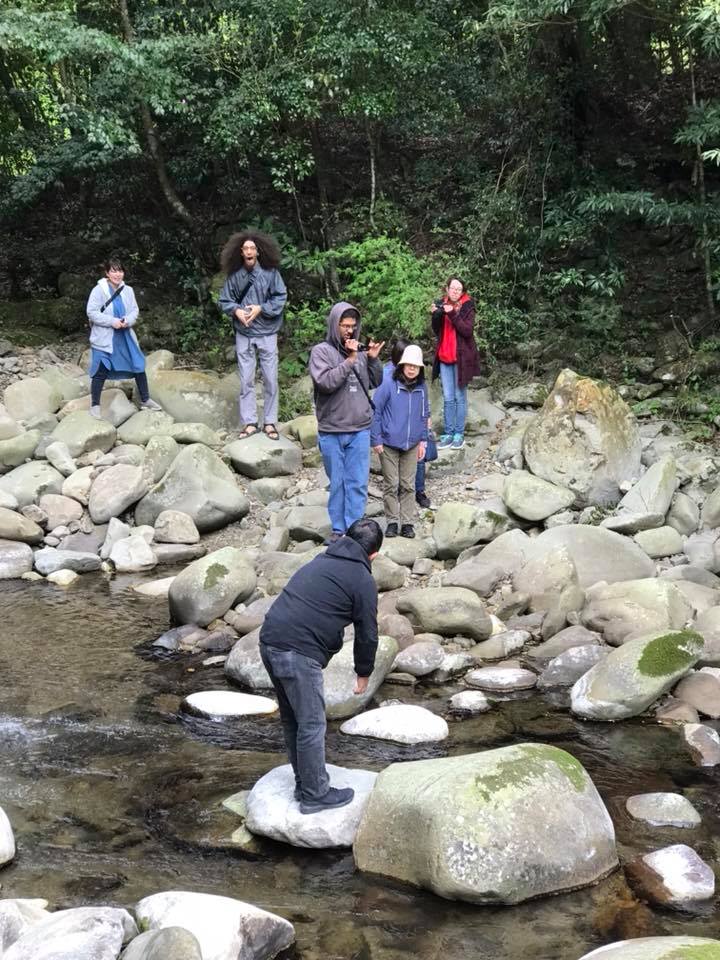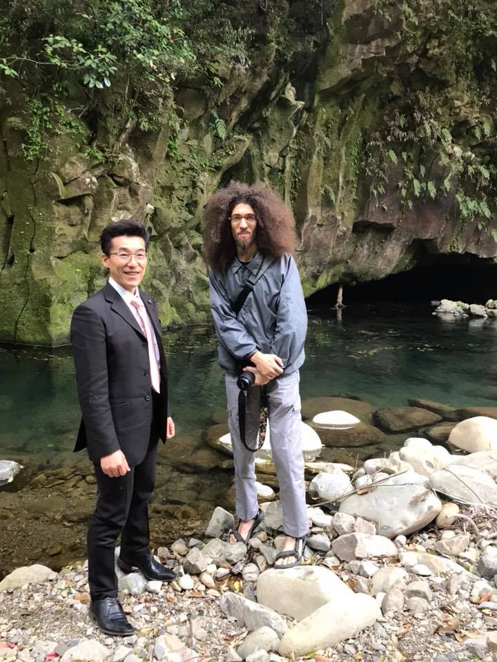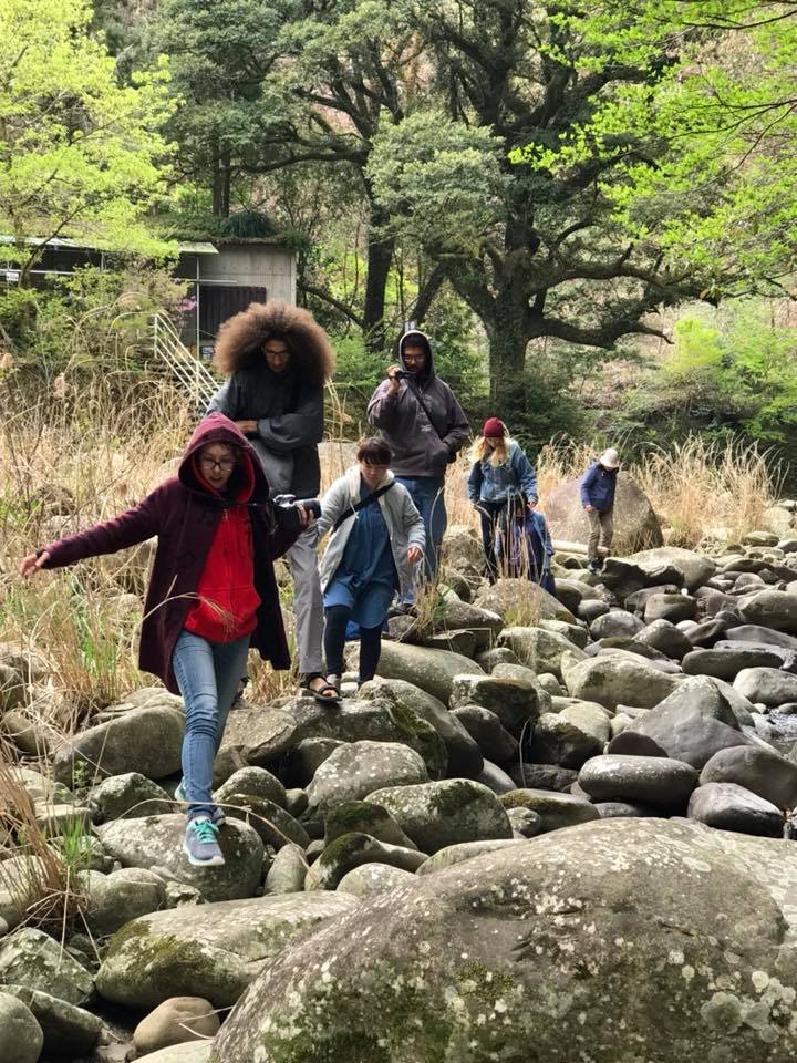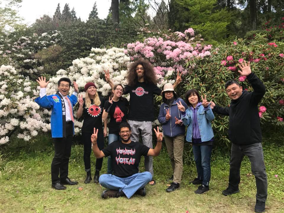 Yoyaku yokai 予約妖怪⁇ かさしま君の紹介で、アメリカから映画監督さんが来られ、妖怪の映画を撮りたいとのことで、しゃくなげの森の川を見せてくださいと。もちろん快諾。 妖怪の映画⁇よくわからないけどアテンド。しかし今日は風が冷たくて寒い。 なのにみんな薄着 川に連れて行くと会議にかけるスチールを撮るため、妖怪役にかさしまくん(笑。 ところが、ノリノリで俳優並みの演技をするポテンシャルの高さ。お主なかなかやるな 帰りに飛び石で川を渡る際、この石グラグラ揺れるから気をつけてと言ったのに、川に落ちるお約束もやっぱりかさしまくん。どこまでもレジェンド作ります。 最後は寒いのに監督をはじめYoyaku yokaiのオリジナルTシャツで記念撮影。これからがますます楽しみになる予感 ちなみにパワフルアフロが監督さん、夜中に出てきたら、ぱっと見こっちが妖怪に見えるんですけど〜笑 Afro Pictures