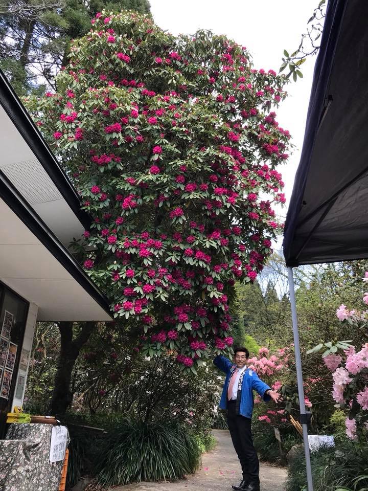 しゃくなげの森入口の樹齢70年のシャクナゲ、満開が近づいています。