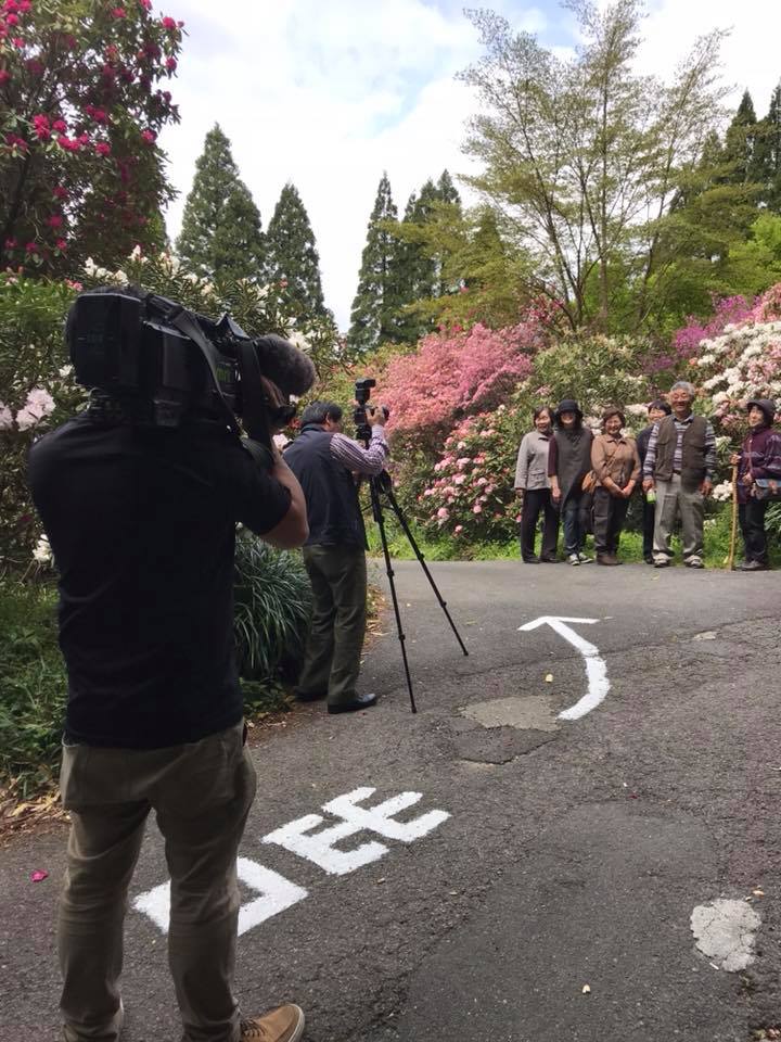 咲き誇るしゃくなげを背景に、集合写真を撮る姿を、撮るカメラマンを撮りました