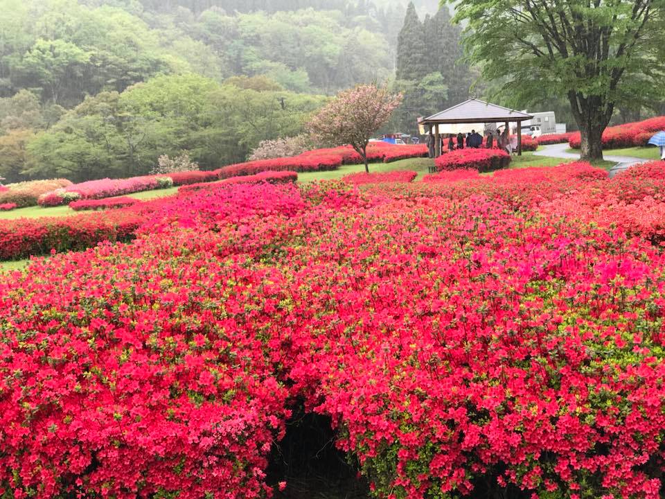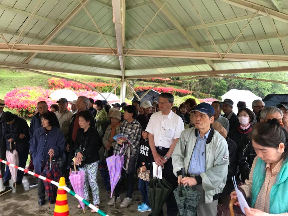 椎八重公園満開 三股町観光情報 椎八重公園満開です。 今日はあいにくの雨でしたが、セレモニーでツツジ苗木の配布があり多くのお客様が、足下の悪い中をおこしいただきました。 いま満開なので、来週までどうにかもつかという状況です。 三股町観光協会会長として、早馬祭り、ガッツリランチプロジェクト、モノづくりフェア、長田峡の河童のPRをさせていただきました。