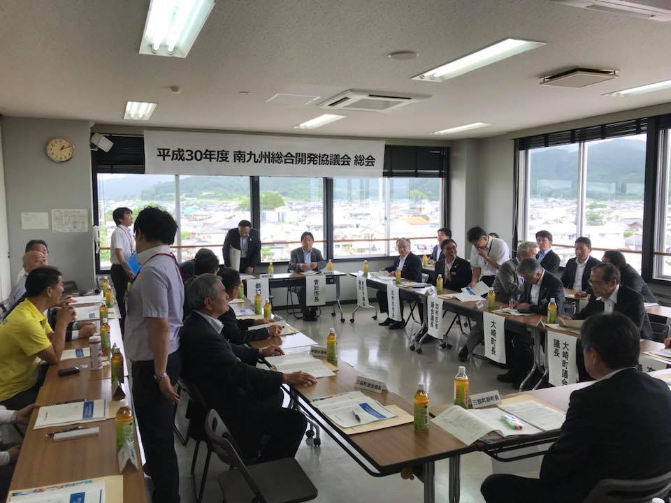 南九州総合開発協議会の総会 南九州総合開発協議会の総会。 宮崎県、鹿児島県の構成6市3町(都城市、日南市、小林市、串間市、曽於市、志布志市、三股町 高原町、大崎町)の首長と議長が集うトップ会議体。 昭和53年に設立の40年を超える協議会です。 高規格道路、国道県道などインフラ整備や新燃岳問題、救急医療体制の充実など、圏域の問題を共有して関係機関に要望していきます。