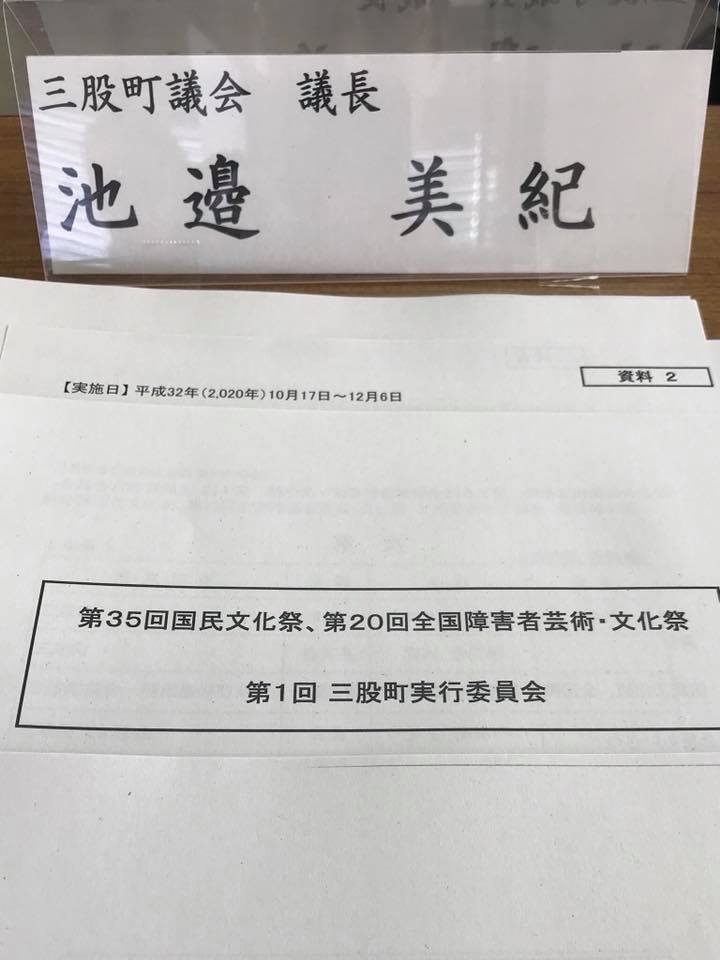 「国民文化祭」三股町実行委員会 文化の国体と言われる「国民文化祭」の三股町実行委員会 東京オリンピックの開催年である2020年に、宮崎県で国民文化祭および、全国障害者芸術・文化祭を開催されます。 その準備の三股町実行委員会。 町長を筆頭に、わたくし議長、教育長、文化協会会長、商工会長、JA支所長、障がい者連絡協議会長などで組織。 開催まで2年ありますが、大きなイベントは悠長にしてるとすぐに来ることはみなさん経験上よくわかっている様子です。