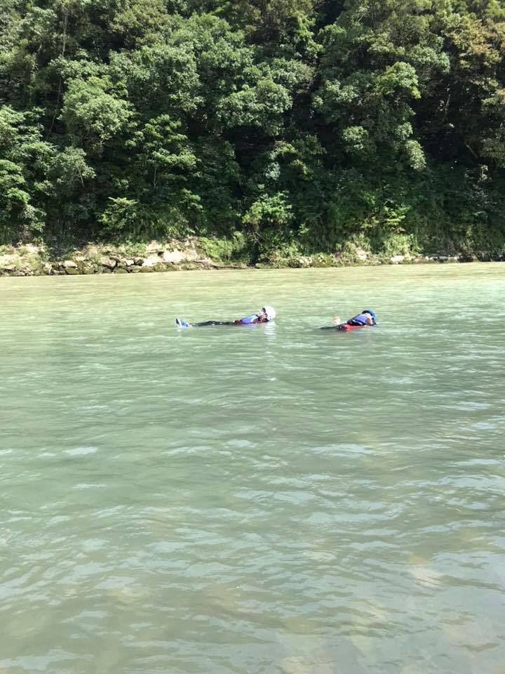 ロープレスキューでは、濁流の中を流れその恐さも体験し、準備と段取りの訓練がいかに大事か、ということも考えてもらいました。