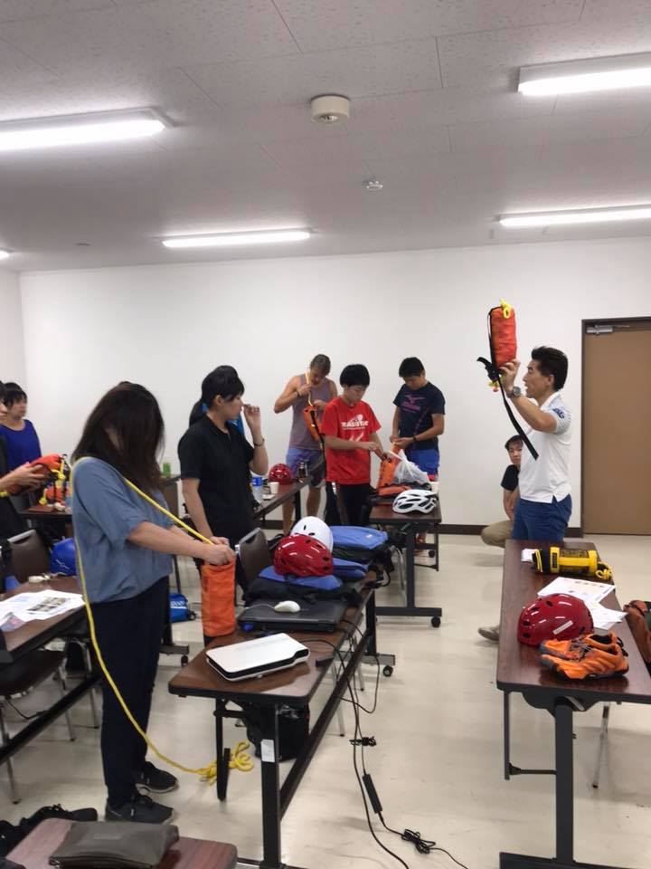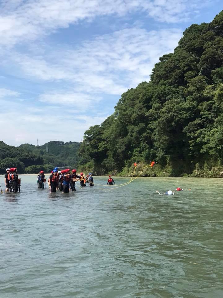 水難レスキューのインストラクターとして、川の流れの恐さ、渡河訓練、ロープレスキューを指導。