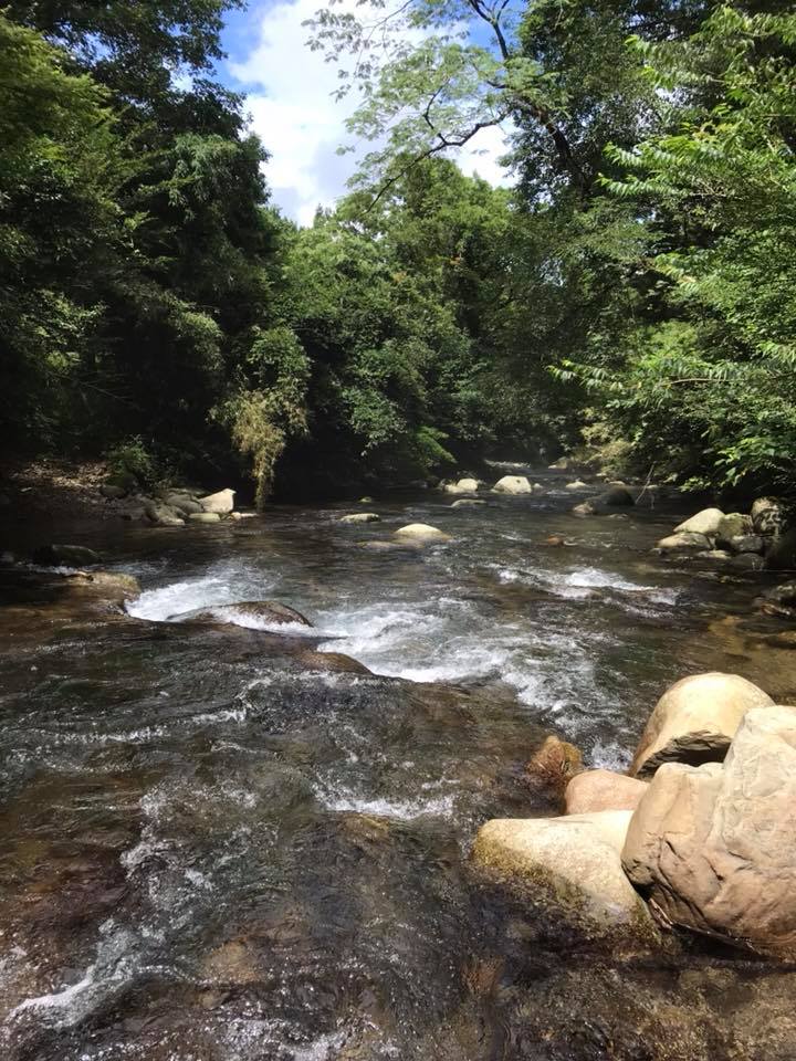 服を脱ぎ捨て、庭の川にザブンと入れる贅沢