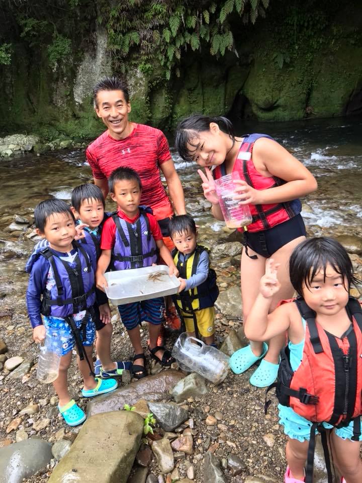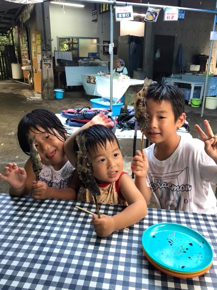 魚とり教室@しゃくなげの森 今日のイベントは魚とり教室 ペットボトルを使ってトラップを作り小魚を捕ります。 トラップ作りはお父さんお母さんの出番。試行錯誤しながら頑張ってました。 トラップ仕掛けは子どもたちが自分で、流れをよんで、魚の気持ちになって仕掛けます。 今日はアブラメが15尾入りました。 待っている時間に大人気のヤマメつかみ取り。 今日も歓声が響きました。 ヤマメ塩焼きにかぶりついて最高の笑顔もらいました。今日も大成功のイベントでした〜〜