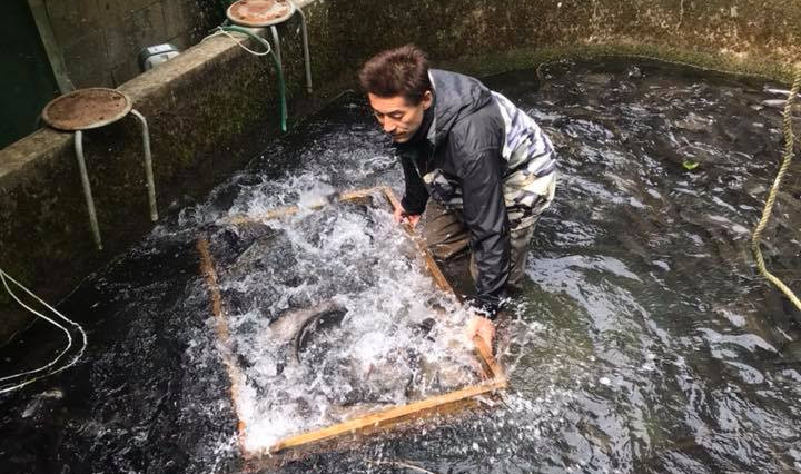 幻の尺ヤマメ出荷作業 幻の尺ヤマメ出荷作業中! 全国の有名店舗に発送されていきます。 昨夜、宮崎でイベントがあり、グルメなゲスト約50名がフォーマルな姿で尺ヤマメを堪能され、お客様の笑顔を見ることができました。おかげさまで今日は朝から元気がみなぎっております 最高に美味しいものをお届けして、食べた人がみんな笑顔になっていただけるように、今日も渓流の澄んだ冷たい水の池につかり、ヤマメ生産者として頑張っています。
