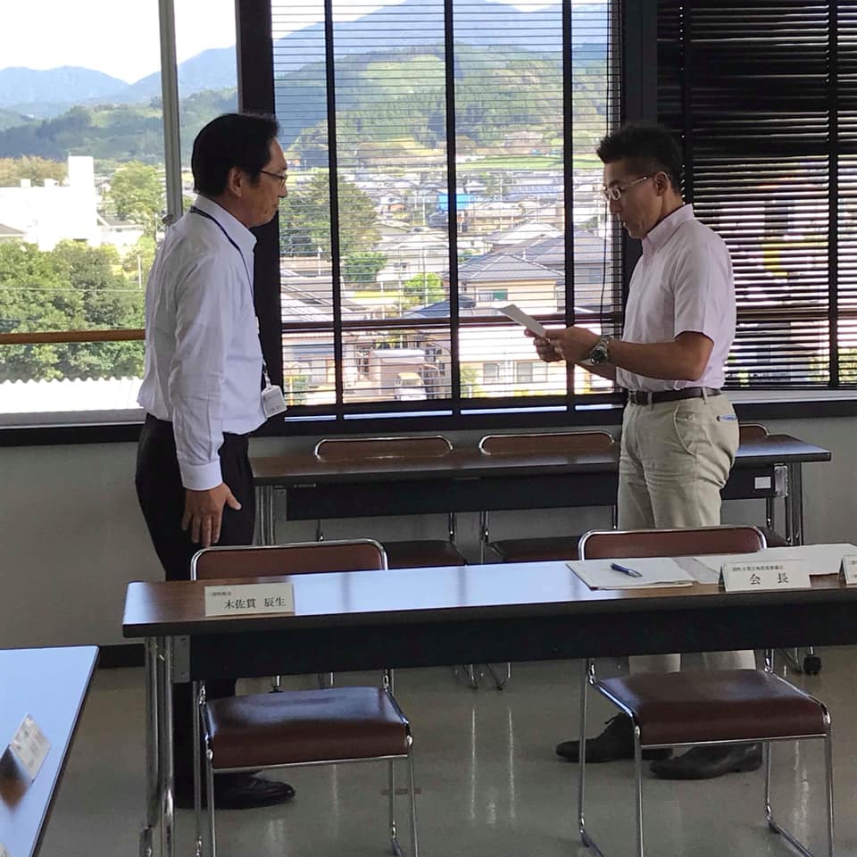 三股町企業立地促進審議会 三股町企業立地促進審議会。 本日、会長に就任し、町長から諮問を受け指定要件を満たしているかなどを審議。 結果をまとめ町長に答申をいたしました。 企業誘致2社が全会一致で承認されました。 台風の後片付けに追われる中をぬっての会議でした