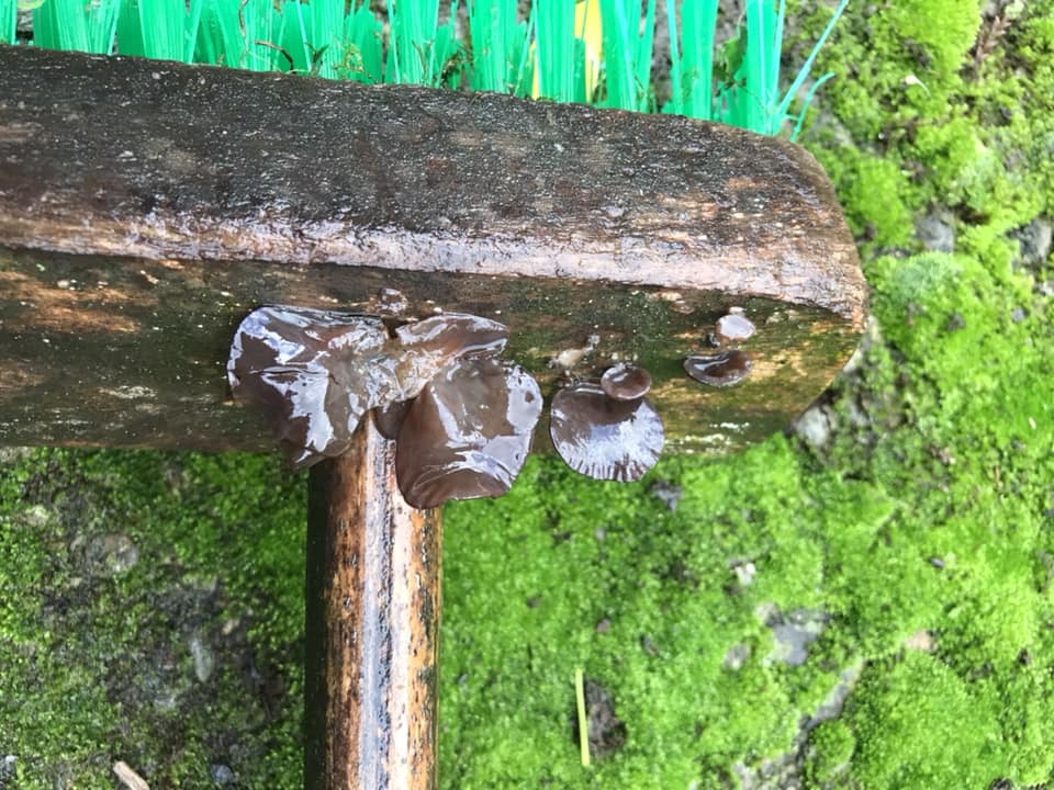 キクラゲ 自然が豊かすぎる! デッキブラシにキクラゲが生えてました😃 ここではキクラゲは買うものではなく、生えてくるものです。キクラゲに限らずシイタケやヒラタケも条件が揃えば生えてきます。 きのこ博士の先生の、この辺は少し風が吹くと胞子がバンバン飛んでるはず、という言葉を思い出しました😃