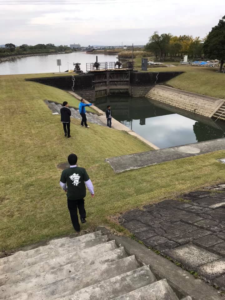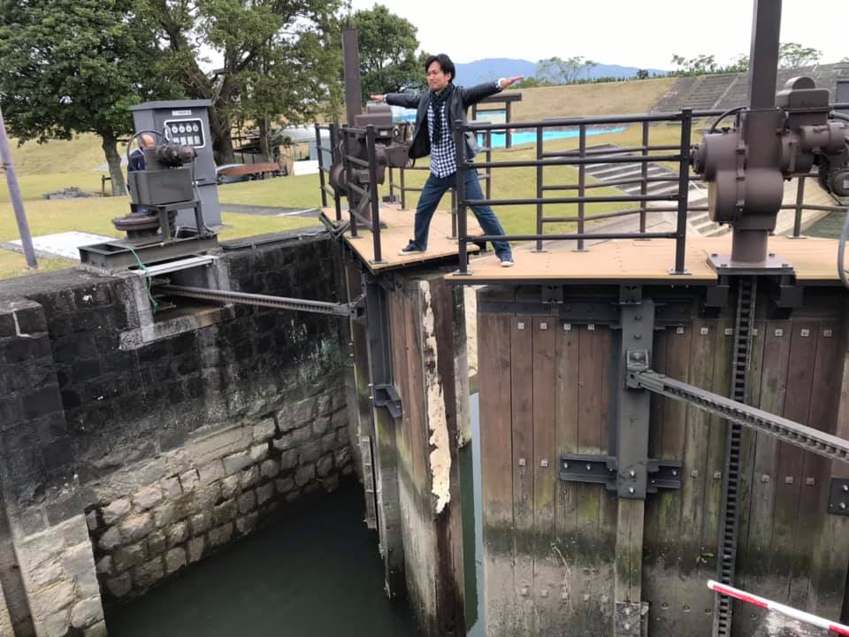 閘門の重厚な造りに感動。しかも、会長が少しだけ開門してくださり、船を行き来させる造りに感心しました。