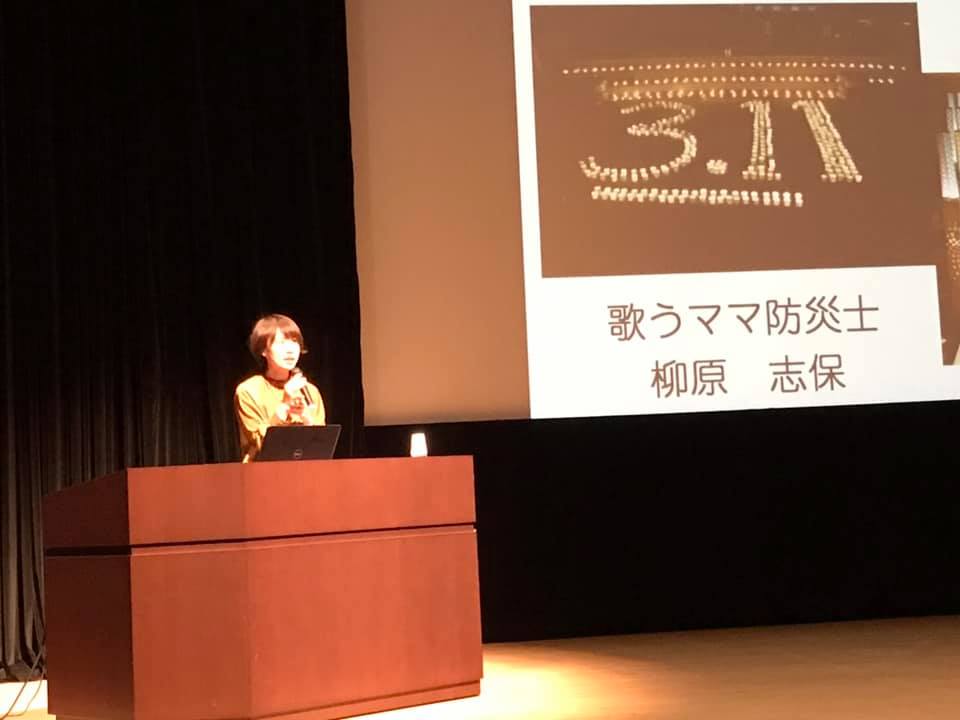 「歌うママ防災士」の肩書きで活躍している柳原 志保先生の講演