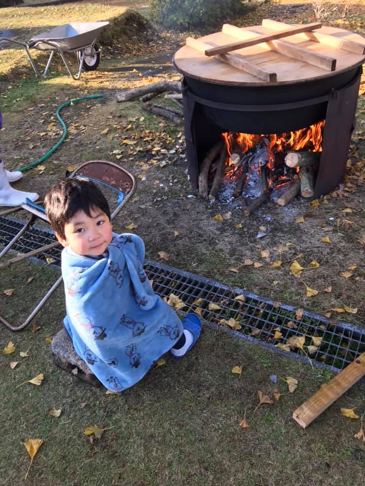 笠島ジュニアが火の番楽しそう!😊