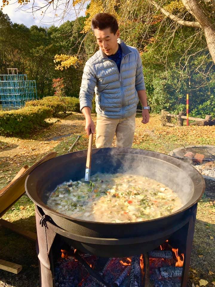 朝からイノシシ🐗汁300人前作っています。