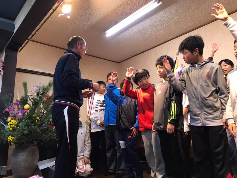 宮崎県市町村駅伝2019 宮崎県市町村駅伝2019の応援。 会場は大変盛り上がっています。 米田監督も燃えてます。😃 三股町は町村の部優勝。 一人一人が役目をはたして、見事期待に応えてくれました。おめでとう! 駅伝大会の祝勝会 リザーブ選手にも米田監督が、メダルをかけてあげるという粋な計らい。 このメダルから人生が変わる子もいるかもと思いました。 保護者を含め参加90名。大変盛り上がりました。