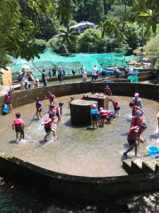 今日の夏のヤマメ祭り しゃくなげの森の「夏のヤマメ祭り」手前はヤマメつかみどりで、奥の方はヤマメ釣り。 涼しい風がふきぬける渓流、ヤマメのつかみどりも大にぎわい。 ヤマメ釣りも釣れたらワイワイ状態。 あちらこちらで歓声があがりみなさん楽しそうです😃