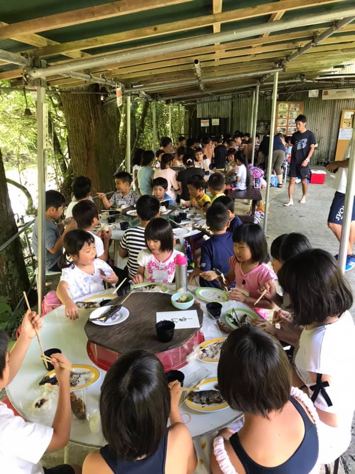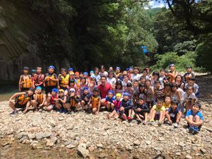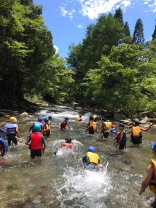 川遊び安全教室 今日は、私、2団体の川遊び安全教室のインストラクターでした。 合計 140名😃 渓流でライフジャケットを装着しての川流れ。 笑顔が弾けるアクテビティ。 人数が人数だけに歓声も迫力ありました😄 ヤマメつかみどりも大盛り上がり。 流しそうめんも忘れられない経験になったことでしょう😊 みんな澄みきった綺麗な渓流ではしゃいで、笑顔がたくさん集まりました。本日も大成功です。
